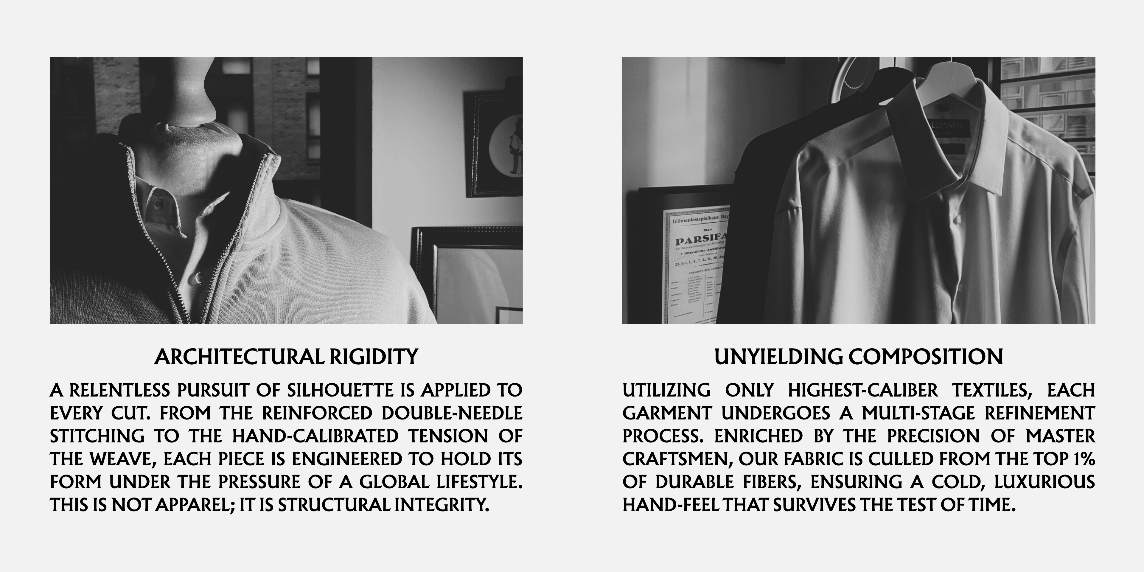 THE LAURENT ZIP RESTS WHERE HE LEFT IT. HE PUTS IT ON WITHOUT THINKING — LIKE DISCIPLINE, LIKE ROUTINE, LIKE SOMETHING EARNED.