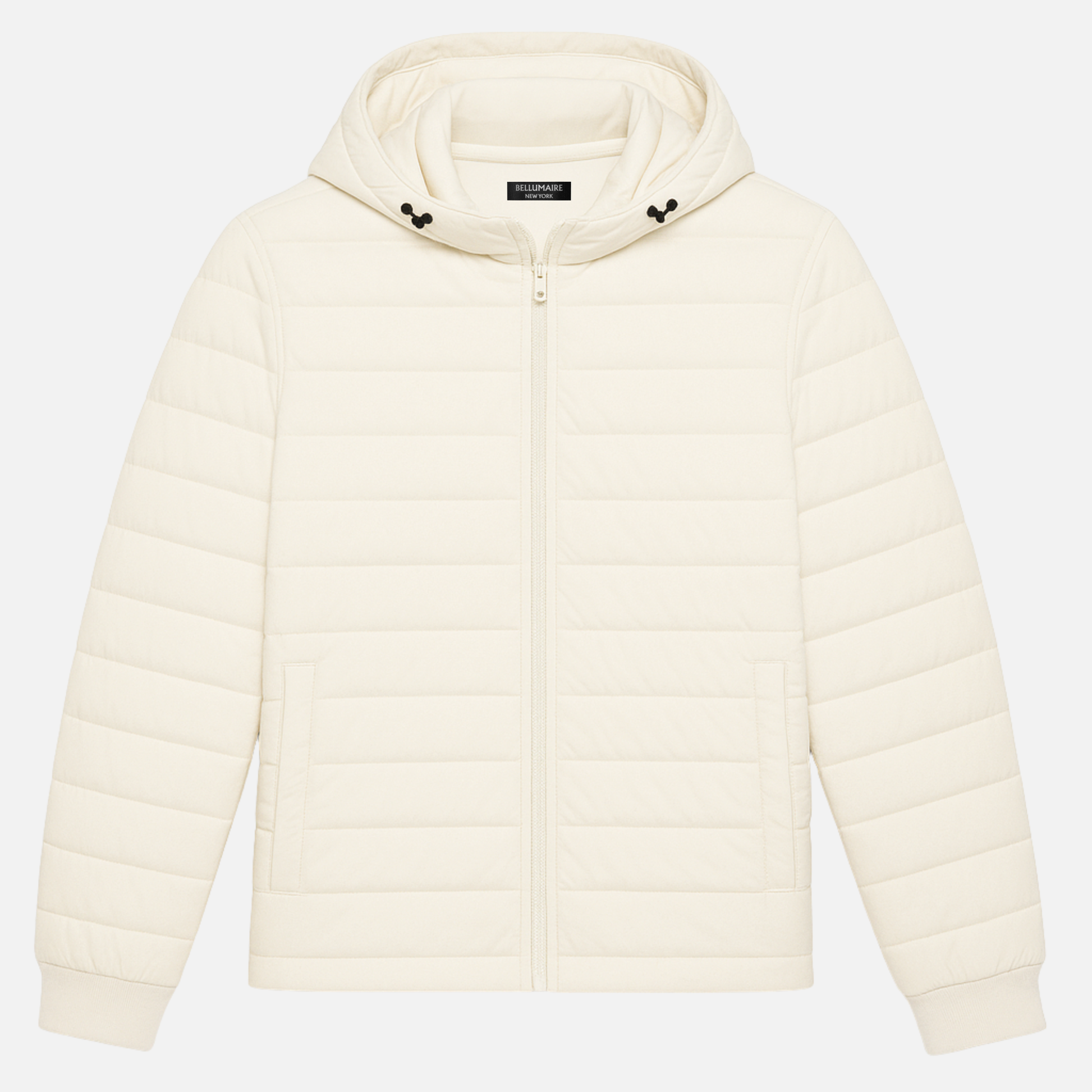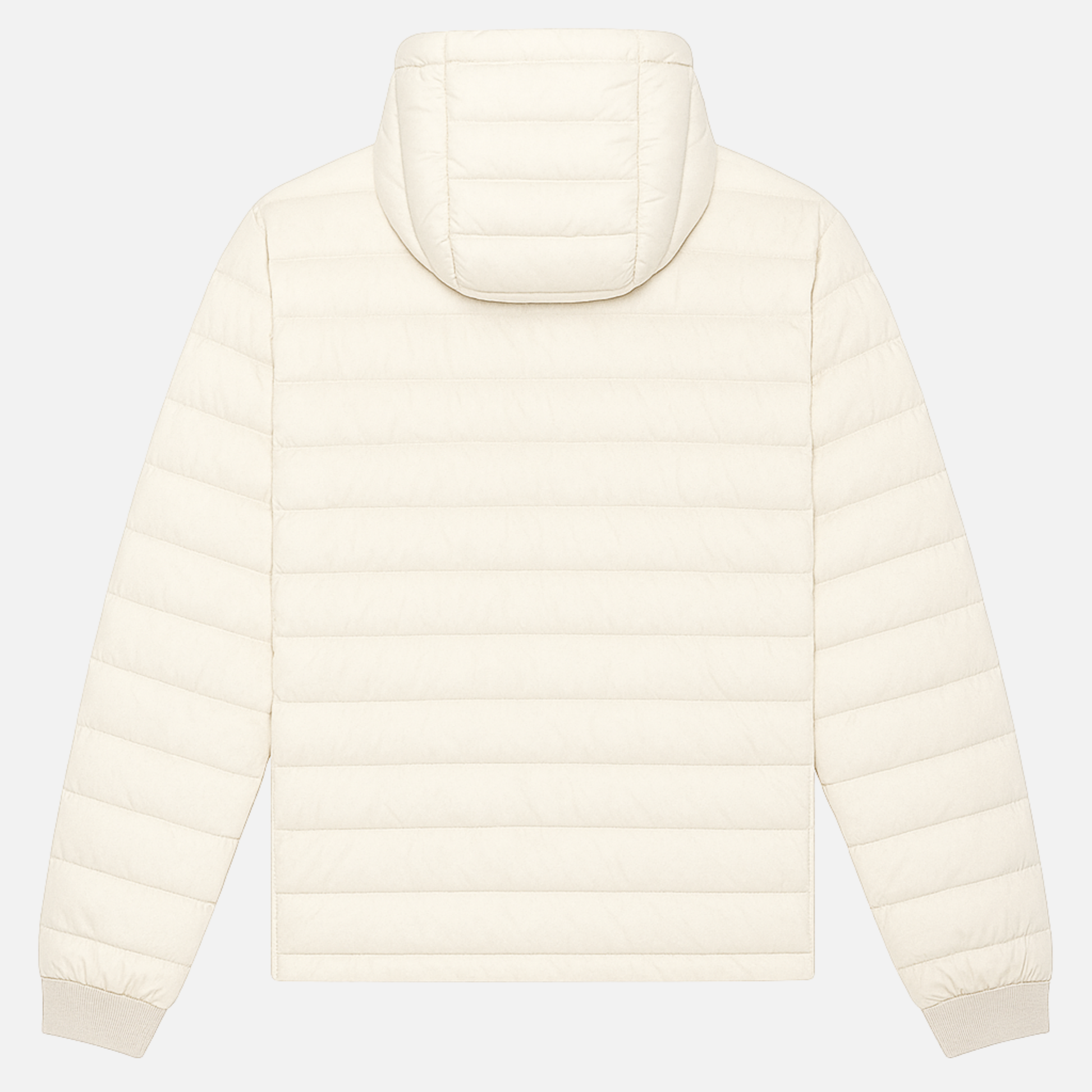 COLD AIR. EMPTY STREETS. MOMENTUM WITHOUT MOTION. THE JACKET IS ENGINEERED FOR PRESENCE — FULLY QUILTED, STRUCTURED, UNMISTAKABLE. 100% RECYCLED POLYESTER SHELL, PADDED AND LINED FOR WEIGHTLESS CONTROL. A DETACHABLE HOOD FOR ADAPTABILITY, RIBBED SLEEVES FOR DISCIPLINE. BUILT FOR MEN WHO MOVE THROUGH CONDITIONS — PHYSICAL OR OTHERWISE — WITHOUT BREAKING PACE.